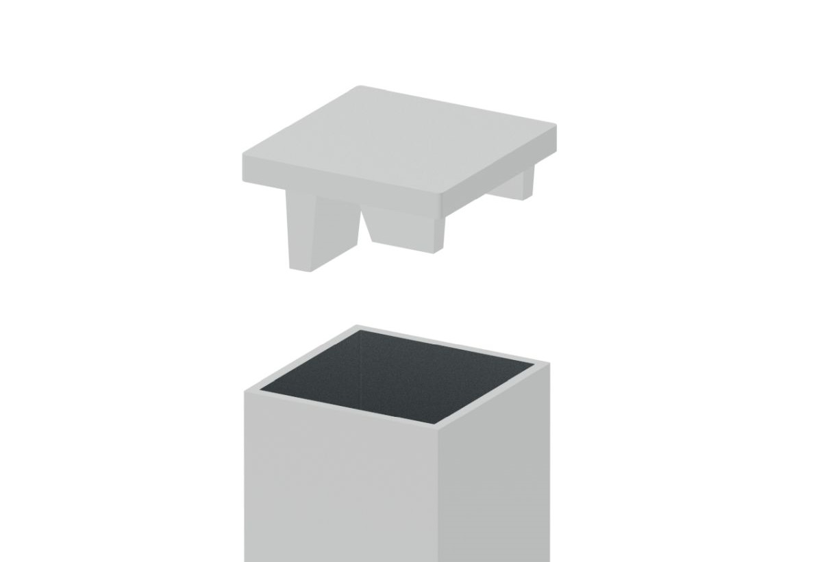 40×40 mm-es 2 mm falvastagságú zártszelvényhez gyártott alumínium végzáró.